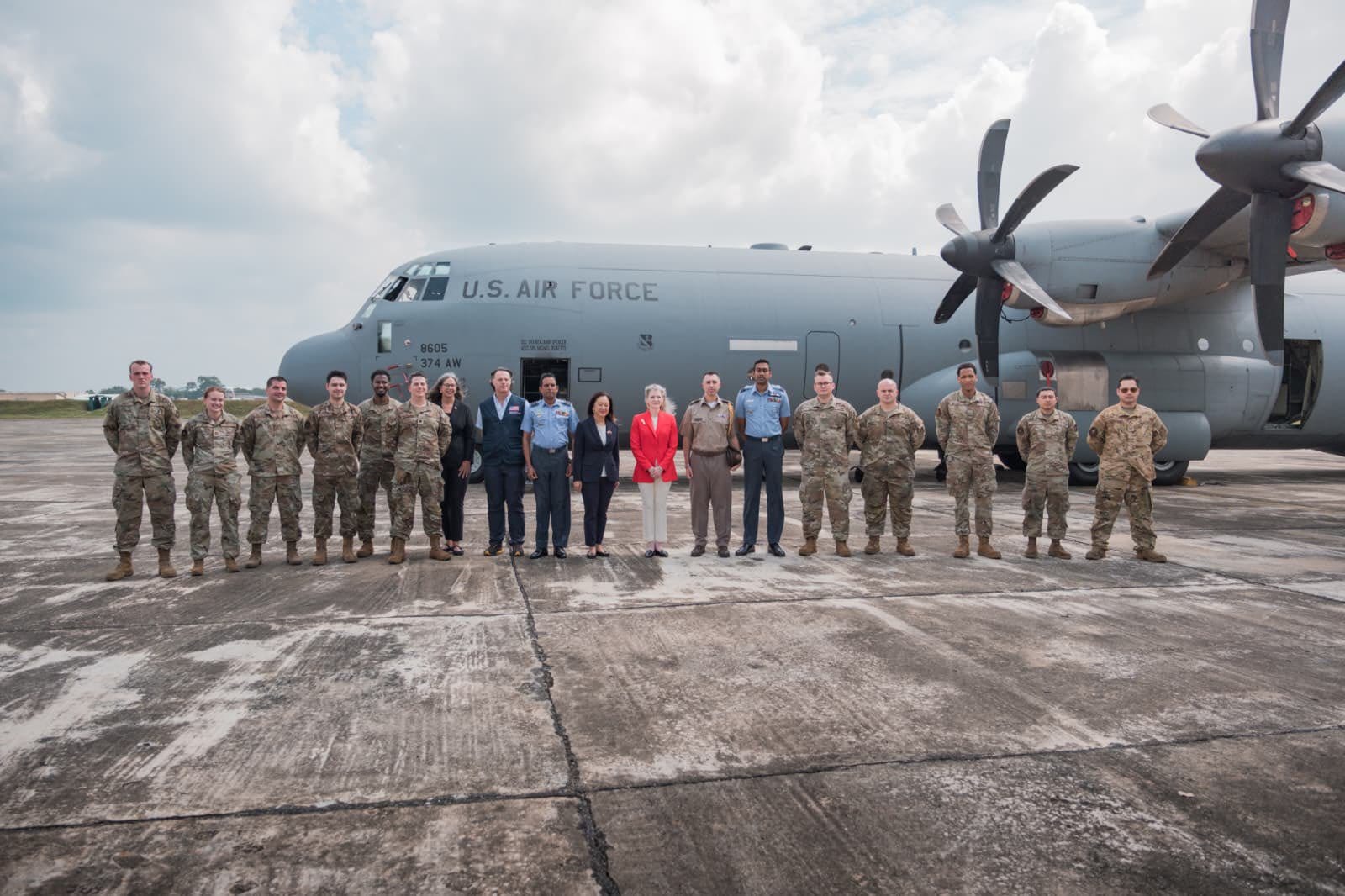 මානුෂික ආධාර සැපයීමට බව පවසමින් එක්සත් ජනපද ගුවන් හමුදා නිලධාරින් 60ක් ශ්රී ලංකාවට ගොඩ බසින ලද ඒ ව්යසනයෙන් සතියකට පසුවය. ඒ වනවිට පිරිසිදු කිරීමේ සහ ගලවාගැනීමේ කටයුතු බොහොමයක් නිමා වී තිබිණි.දිවයින ගොඩ බසින ලද කුණාටු තත්ත්වයන් තුළ පියාසර කළ හැකි C-130 හර්කියුලස් ගුවන් යානා මෙන්ම එහි ප්රභේදයක් වන කාලගුණ නිරීක්ෂණ සහ තොරතුරු රැස් කිරීමේ හැකියාව ඇති WC-130 ගුවන් යානාද ඊට ඇතුළත්විය. අතීතයේදී මේවා වළාකුළු වැපිරීමේ කටයුතු සඳහා භාවිතා කර තිබිණි. මෙම ගුවන් යානාව එහි දරාගැනීමේ හැකියාව, විශාල ධාරිතාවක් ප්රවාහනය කිරීමේ හැකියාව සහ විවිධ තත්ත්වයන් යටතේ ක්රියාත්මකවීමේ හැකියාව යන කරුණු මත බෙහෙවින් ඇගයීමට ලක් වූ එකකි.